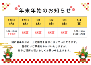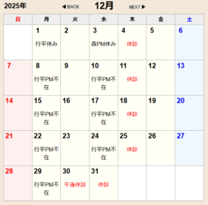 ※最終受付時間は、30分前までです。また、初診の方や新規症状の方の最終受付時間は、診療終了の1時間前までです。