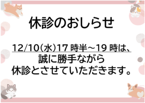 改めまして、診療時間変更のおしらせです。ご迷惑をおかけいたしますが、どうぞよろしくお願いいたします。 -