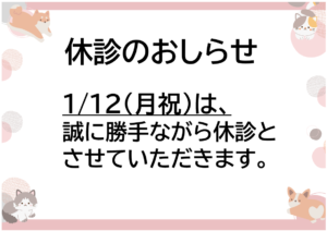当院は本日1/4(日)から診療を開始しております。予約制ですので、お電話にてご予約ください。 -